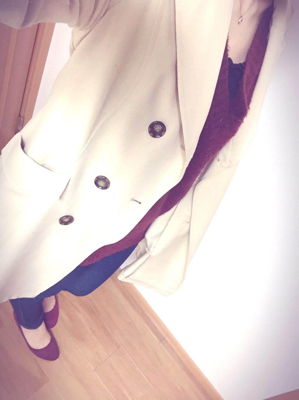 今日は長めのトレンチでカジュアルに(*^^*) DOUXMIEREのピンクゴールドのネックレスはどんな服装にも合うしお気に入り✨