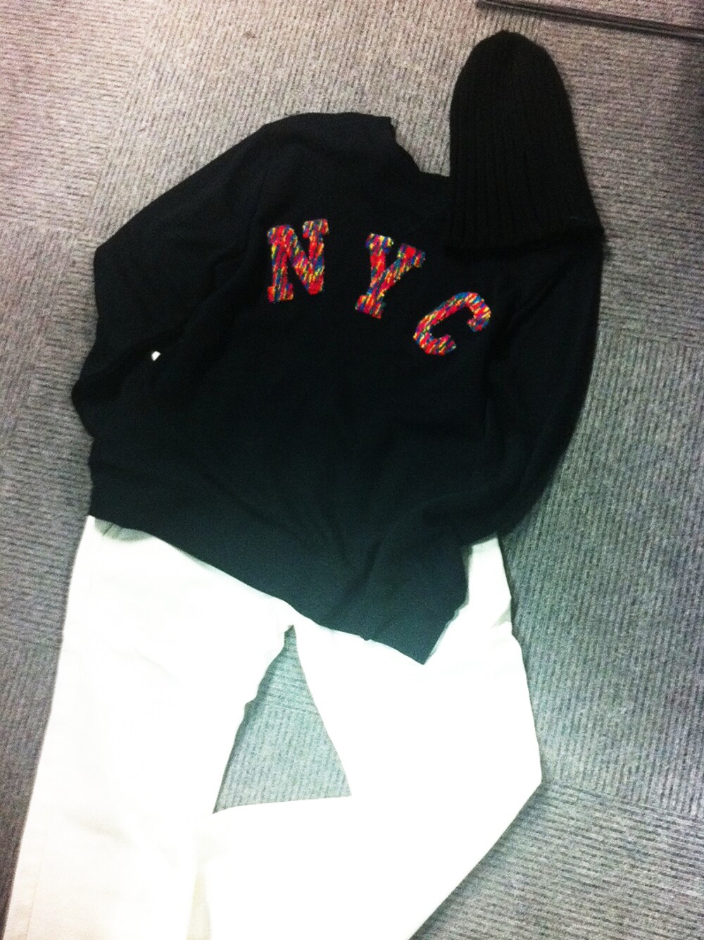 カラフル刺繍のNYCスウェット。 潔く、黒×白。 #部屋暗すぎてきれいに写らない