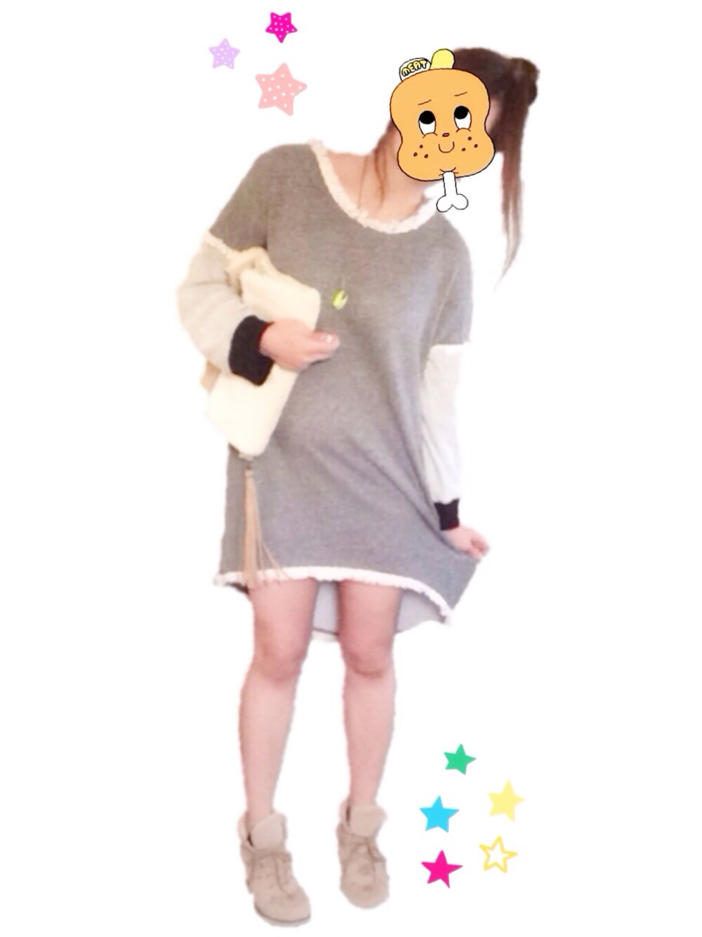 ぶーぶ・くりこのワンピース「裏毛フリンジワンピース」を使ったコーディネート