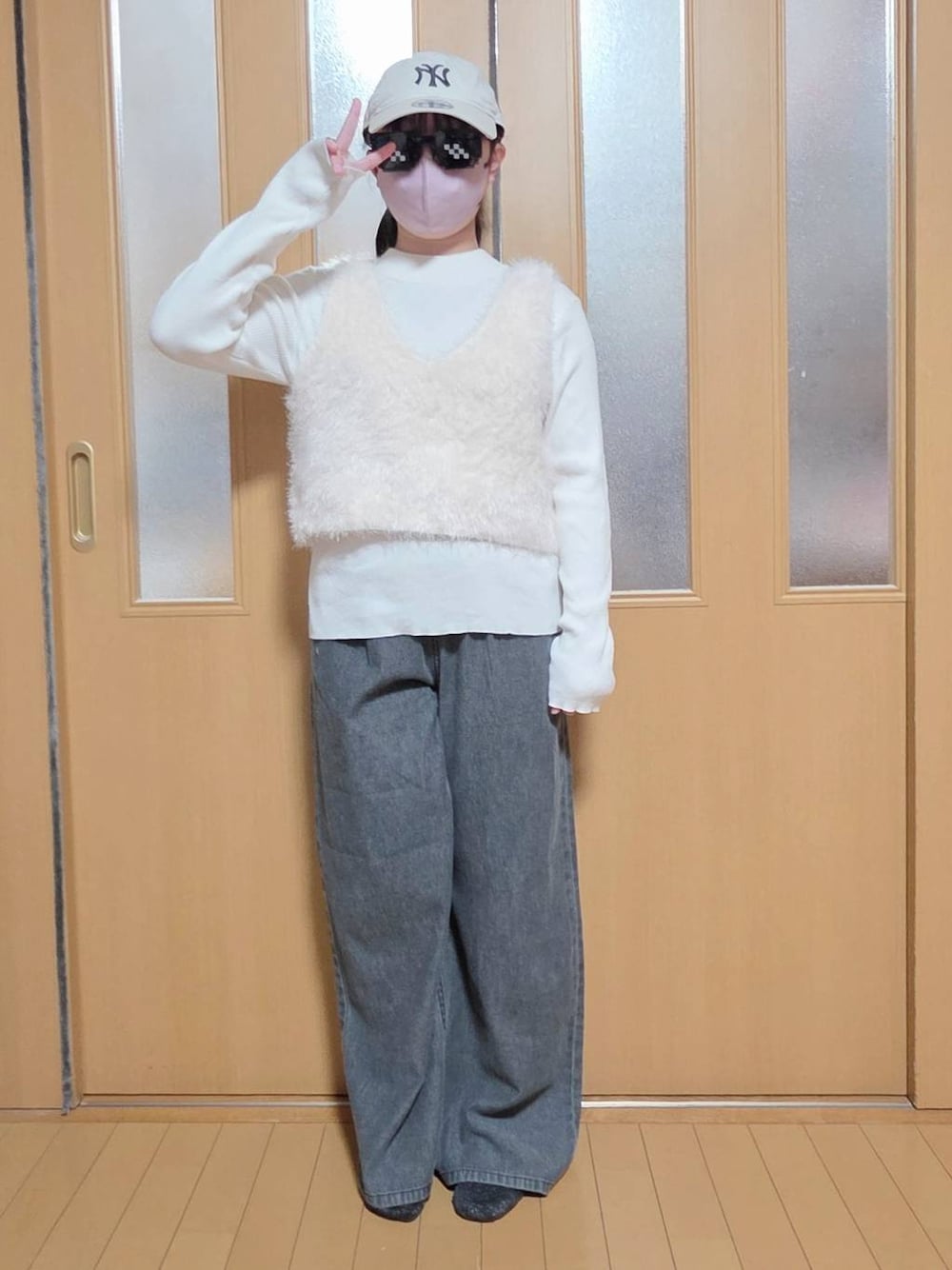 【トップス】160cm着用 【ボトムス】160cm着用 セールアイテムを春コーデに🌸 ファーベストを着回しました🤗 ぜひお試しください✨