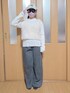 テソ子(GLOBAL WORK ららぽーと和泉)のニット/セーター「アンチピリングなめらかリブハイネックプルオーバー/499708」を使ったコーディネート