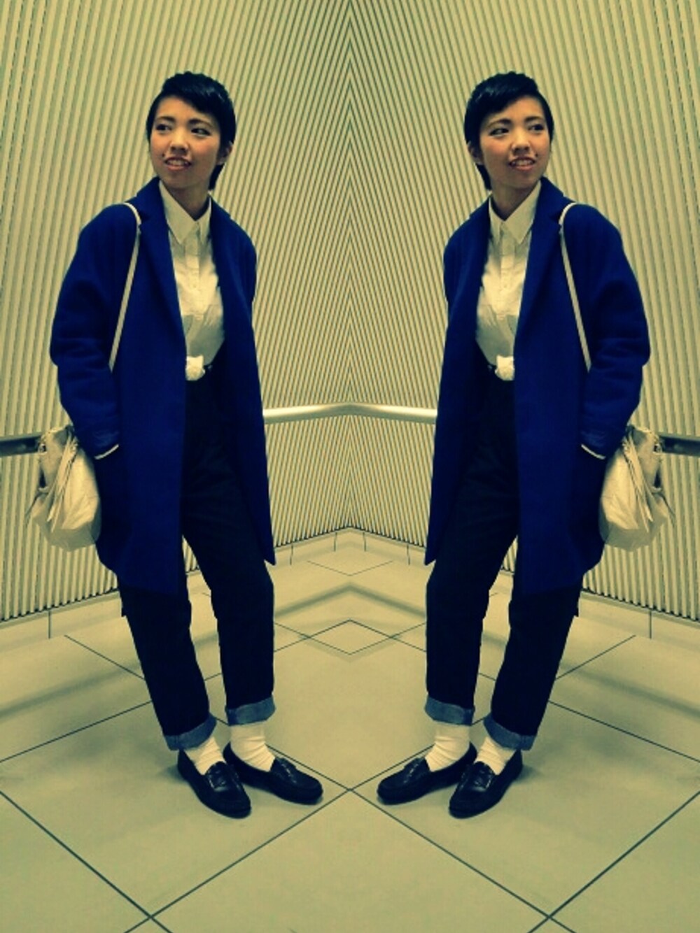 コート/topshop シャツ/USED パンツ/JOURNAL STANDARD ローファー/Regal クラッチバッグ/BARDOT ROSE