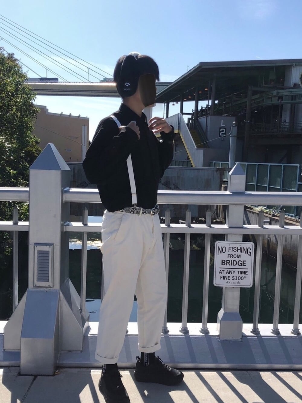 〜〜〜〜〜〜〜モノトーン〜〜〜〜〜〜〜 HARE×UNIQLO キレイめが好きでこんなコーデなってるけど、どこかストリートの部分が欲しくなるから、ソックスで少しストリート入れた。 HAREのデザインと質感、UNIQLOのシンプルな生地感とシルエット、ほんとに相性が抜群。 HAREのトロミシャツの袖に、小物系(腕時計、腕ベルトなど)で締める事で、また違ったシルエットを楽しめて、最高です! UNIQLOのパンツは、コーデュロイとちゃんとトレンドを押えられていて、すごく好きです。センタープレス入っていて、ワイドパンツとは違ったシルエットなので、おすすめです!!