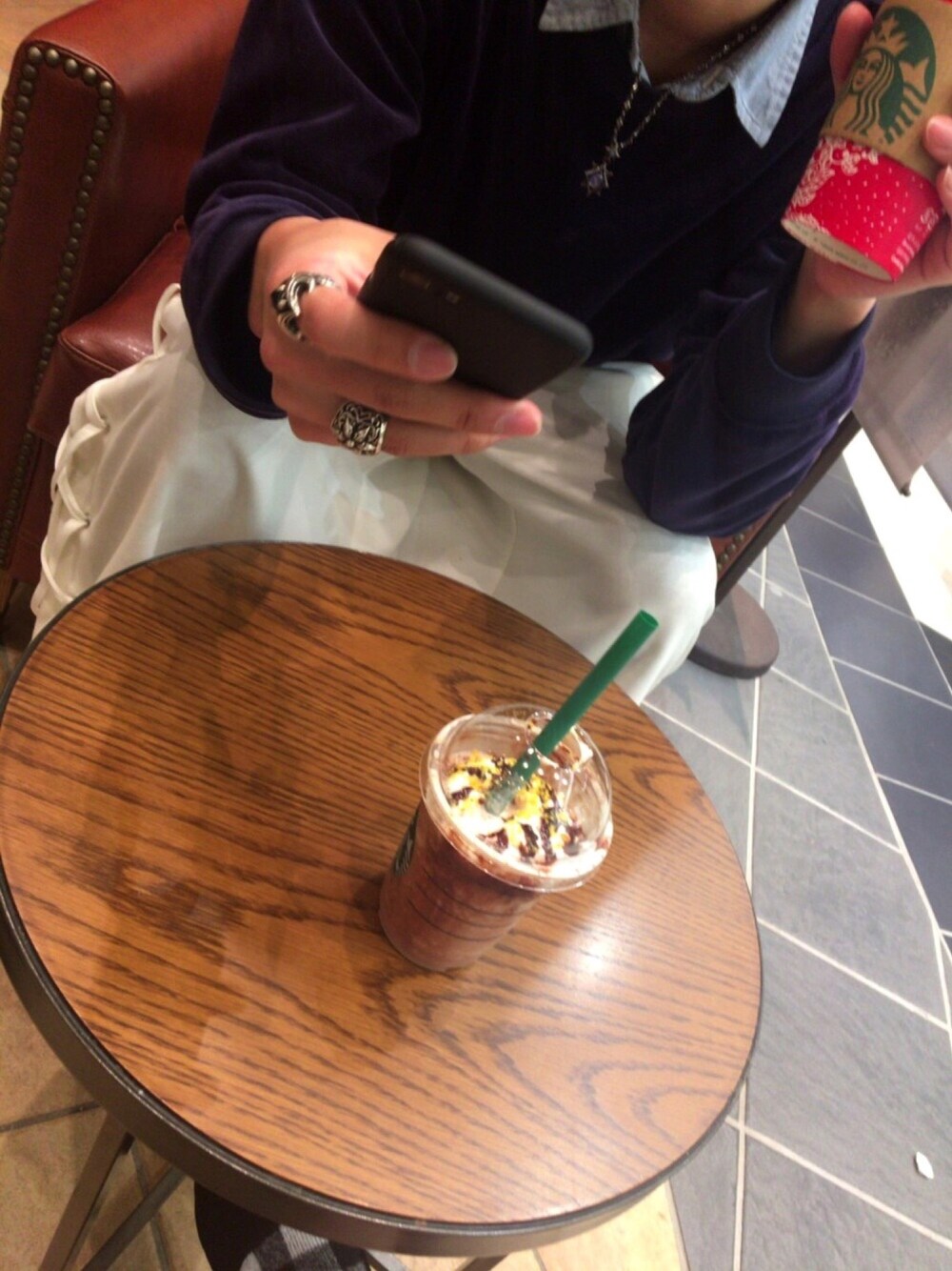 レースアップ袴パンツとベロアトップスが かなり独特な雰囲気出してくれるけど でも落ち着いた感じで🌞 リングとネックレスでチャラくなるけど それも個性ってことで🌞 普通に撮ろうとしてもうまく 映らないのであえてこんな形でUP🌞