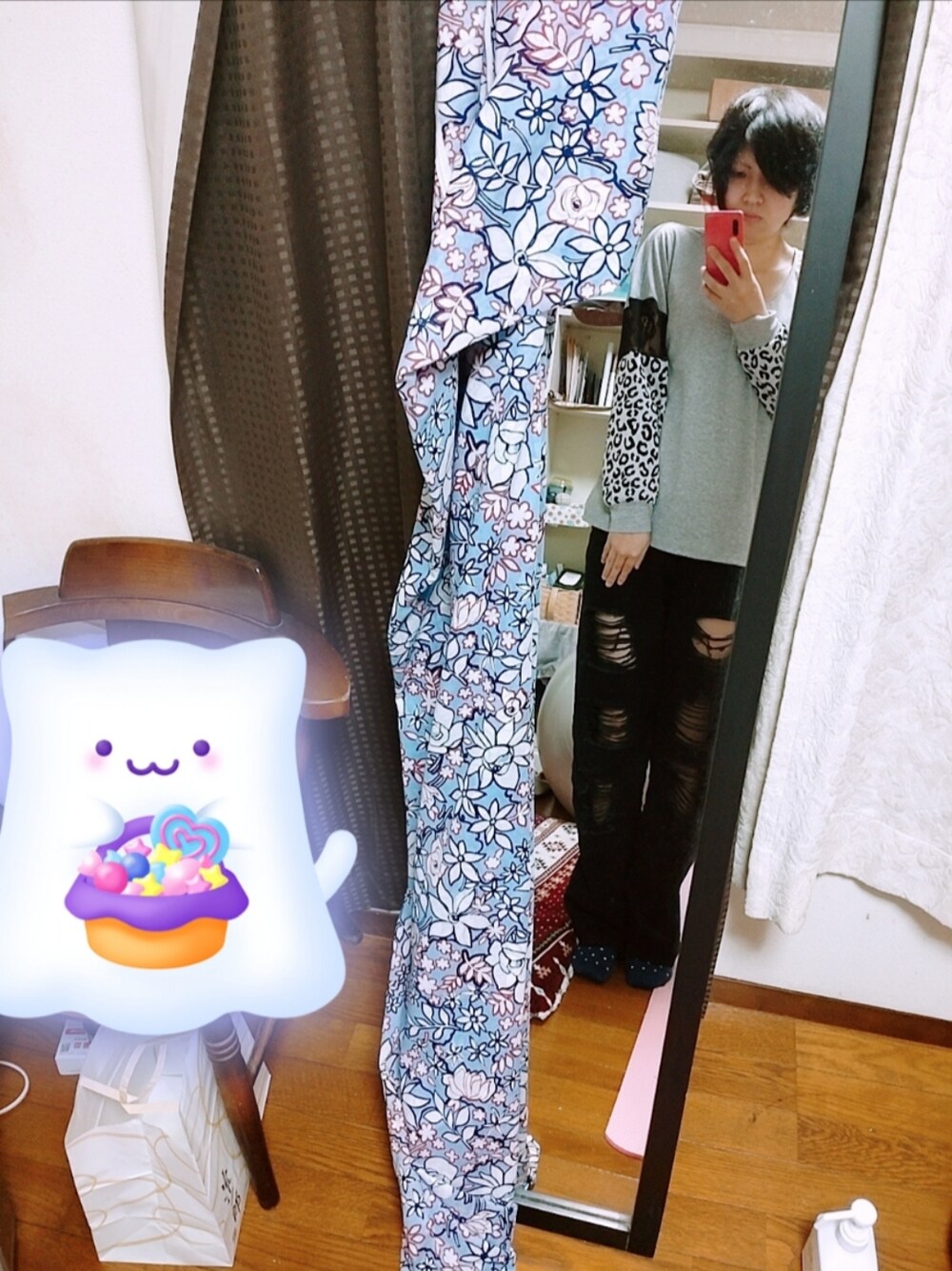 SHEINコーデ。 ワンポイントの袖のレースとヒョウ柄生地が 可愛いです♫ 下はダメージパンツです
