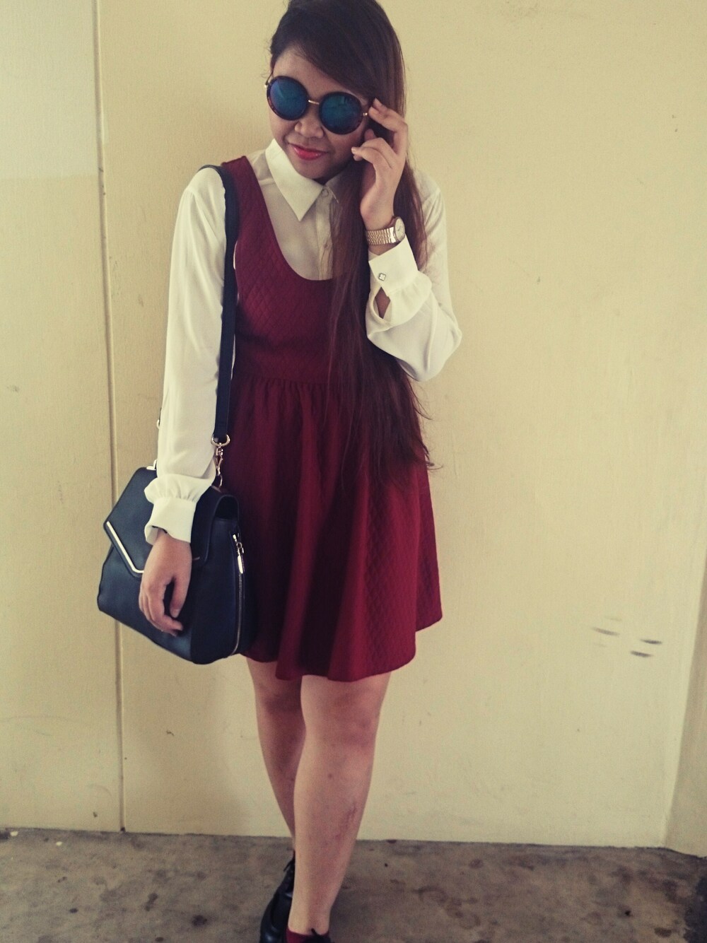 white top: heather dress: jrunway bag:charles and keith