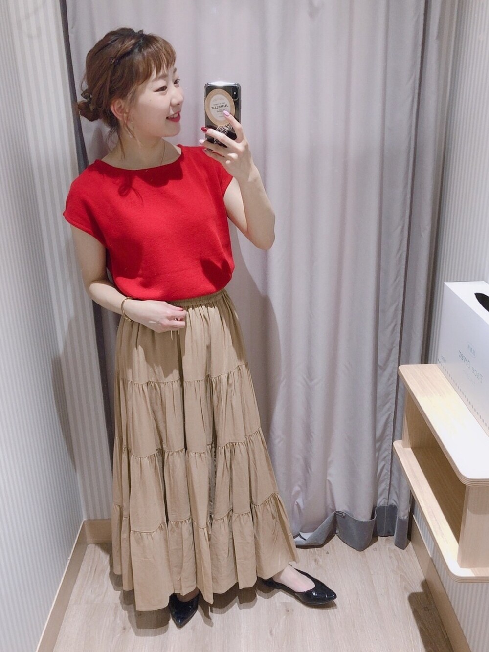 赤×ベージュ🥰大好きな組み合わせ❤️