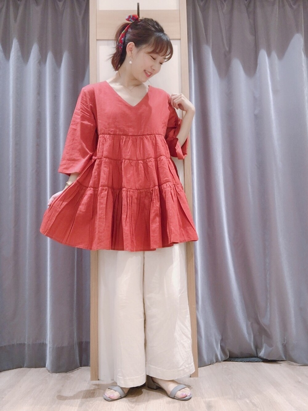 今年のトレンド、ティアード❤️ ちょっと肌寒い日にこの袖の長さ、生地感が、ドンピシャです🌿