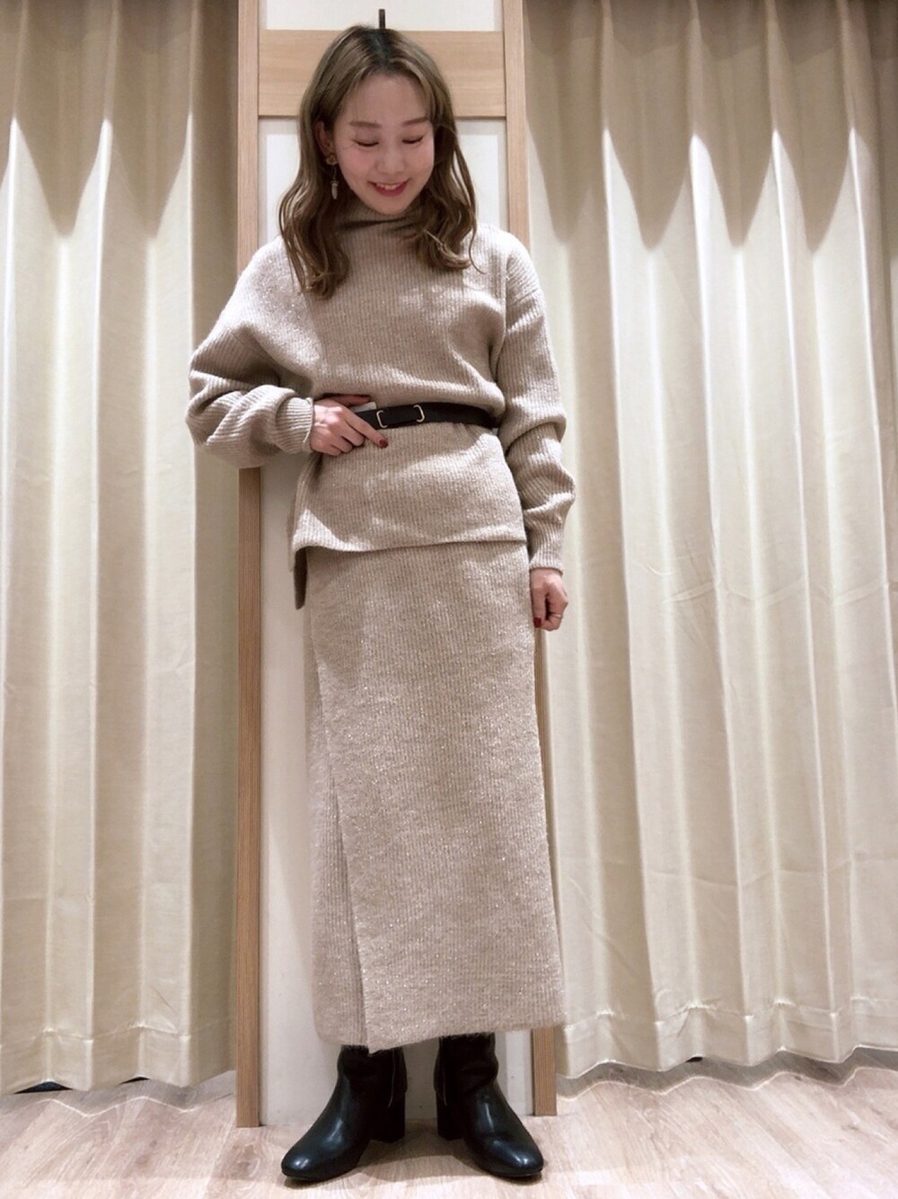 𝕊𝔸𝔼のニット/セーター「片畦ラメ混ハイネックプルオーバー」を使ったコーディネート