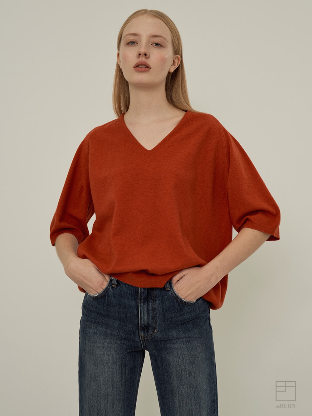 half sleeve Vneck KN premium knit brand [ deBURN ]