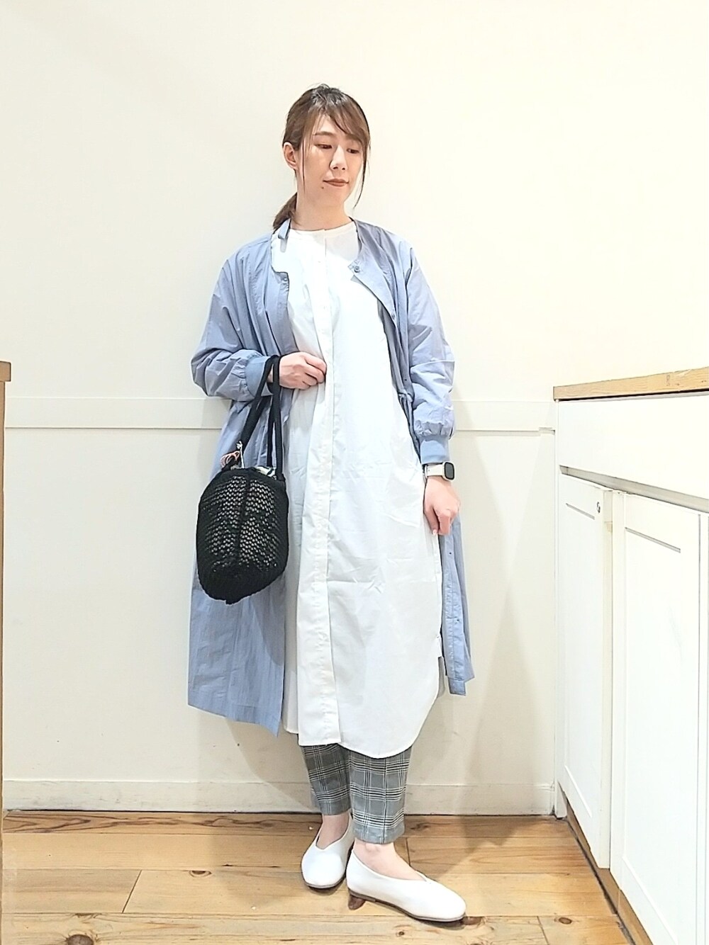 でち(studioCLIP アピレ赤羽)のワンピース「【速乾/接触冷感/マシーンウォッシャブル/お手入れ楽】バンドカラーシャツワンピース」を使ったコーディネート