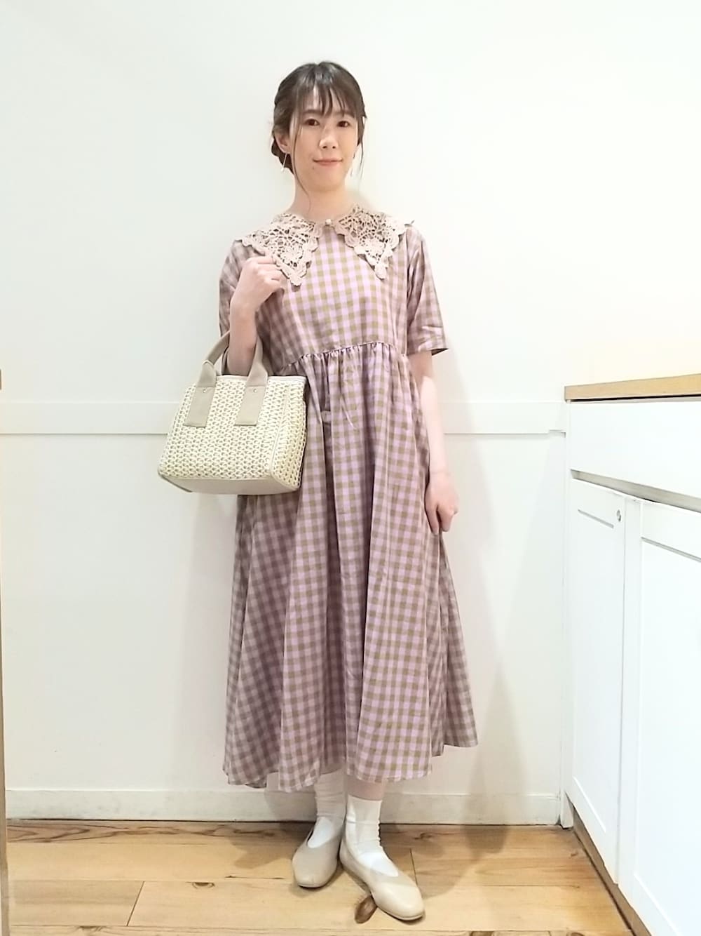 ご覧いただきありがとうございます。 こちらのワンピースは淡いお色でかわいいです! シンプルなので付け襟でガーリーテイストにしてもOKです。