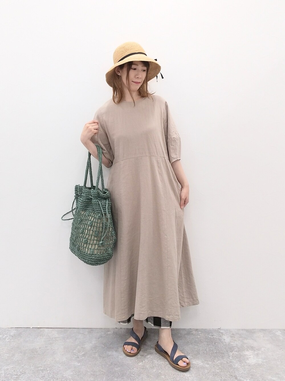 でち(studioCLIP アピレ赤羽)のハット「ラフィアコマ編みアソートハット」を使ったコーディネート