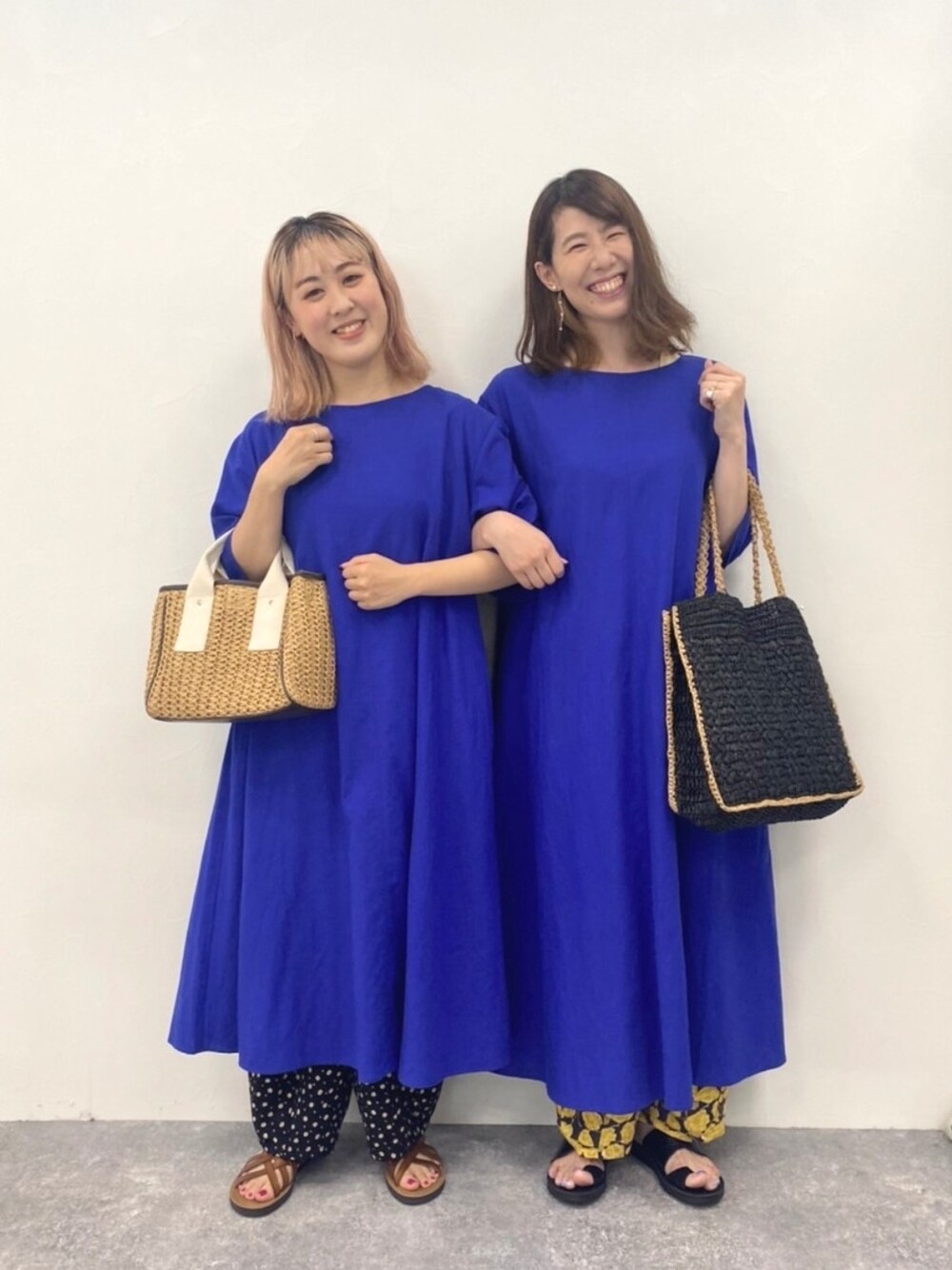 ご覧いただきありがとうございます! こちらのワンピースはプチサイズとフリーサイズ展開です! 伸長差があっても同じ並ぶと同じ丈感で着ていただけます♪