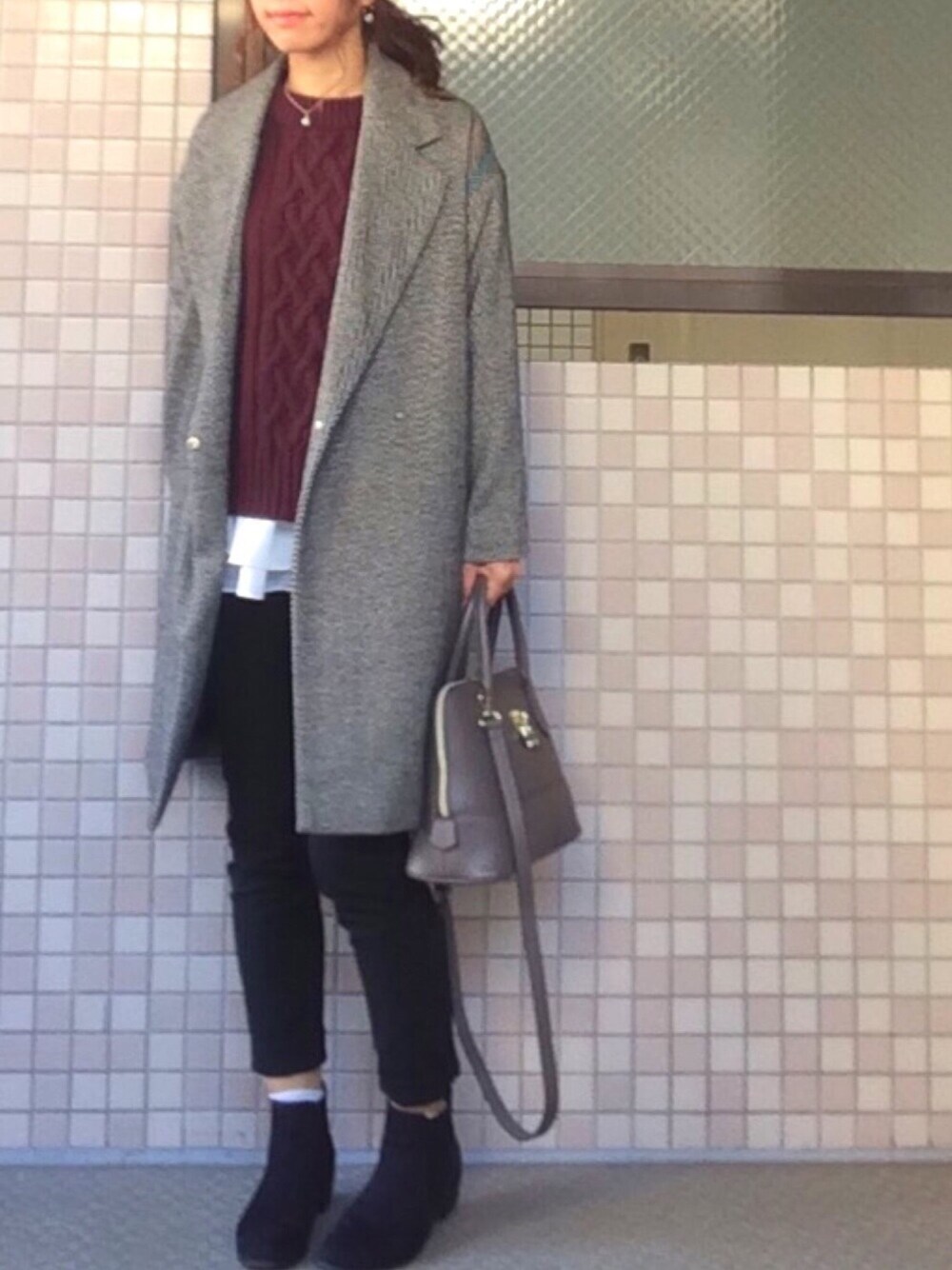 ただの通勤コーデです⭐︎ そしてほぼGU。 ボルドーのアランケーブルセーターの 下にグローバルワークの裾がシャツ状になったカットソーを着てます! これかなり便利。 写真を上手く撮るコツを誰か教えて欲しい。