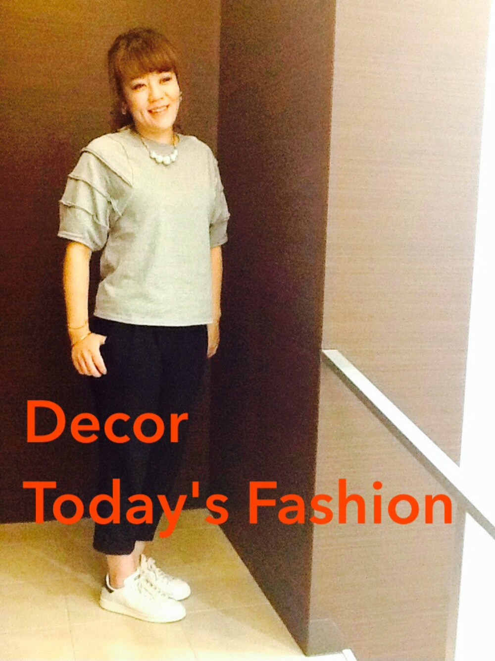 グレーのスウェットは上品な印象。ラフ過ぎないスタイル。スニーカーでスポーティ要素も!