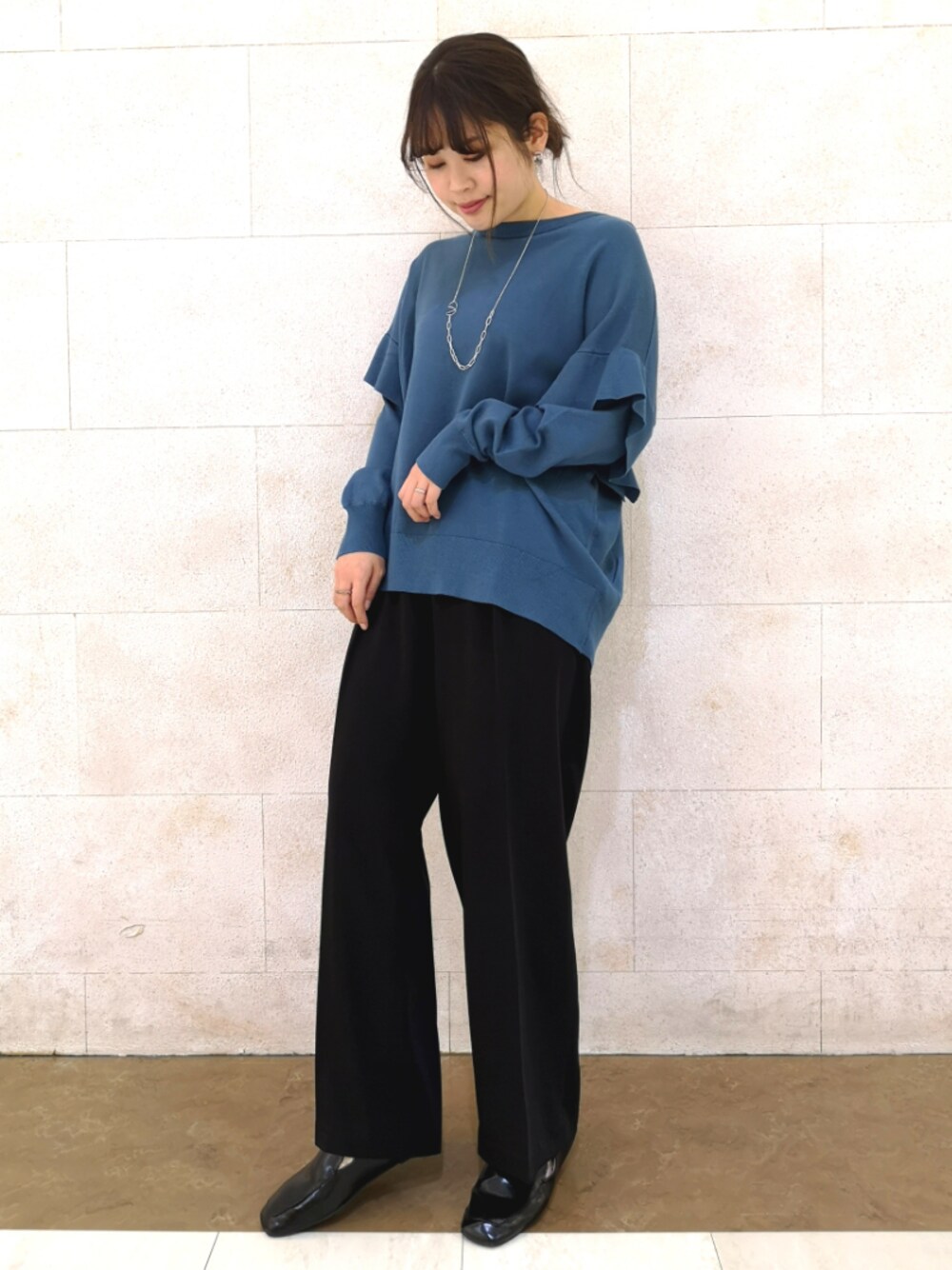 肩フリルがフェミニンな綺麗めニット💙 レーヨン混の素材がつるんとした肌触りとなり、 春に向けて着心地の良いニットプルオーバー。 レッグラインを綺麗にみせてくれる センタープレスのパンツを合わせて、 全体を上品にまとめたコーディネートです◎ シューズはかかと部分がゴムのようなギャザーになっているので、履き心地抜群♪ Instagram>>>> @dedede18_ フォローやコメント是非お待ちしております🐳