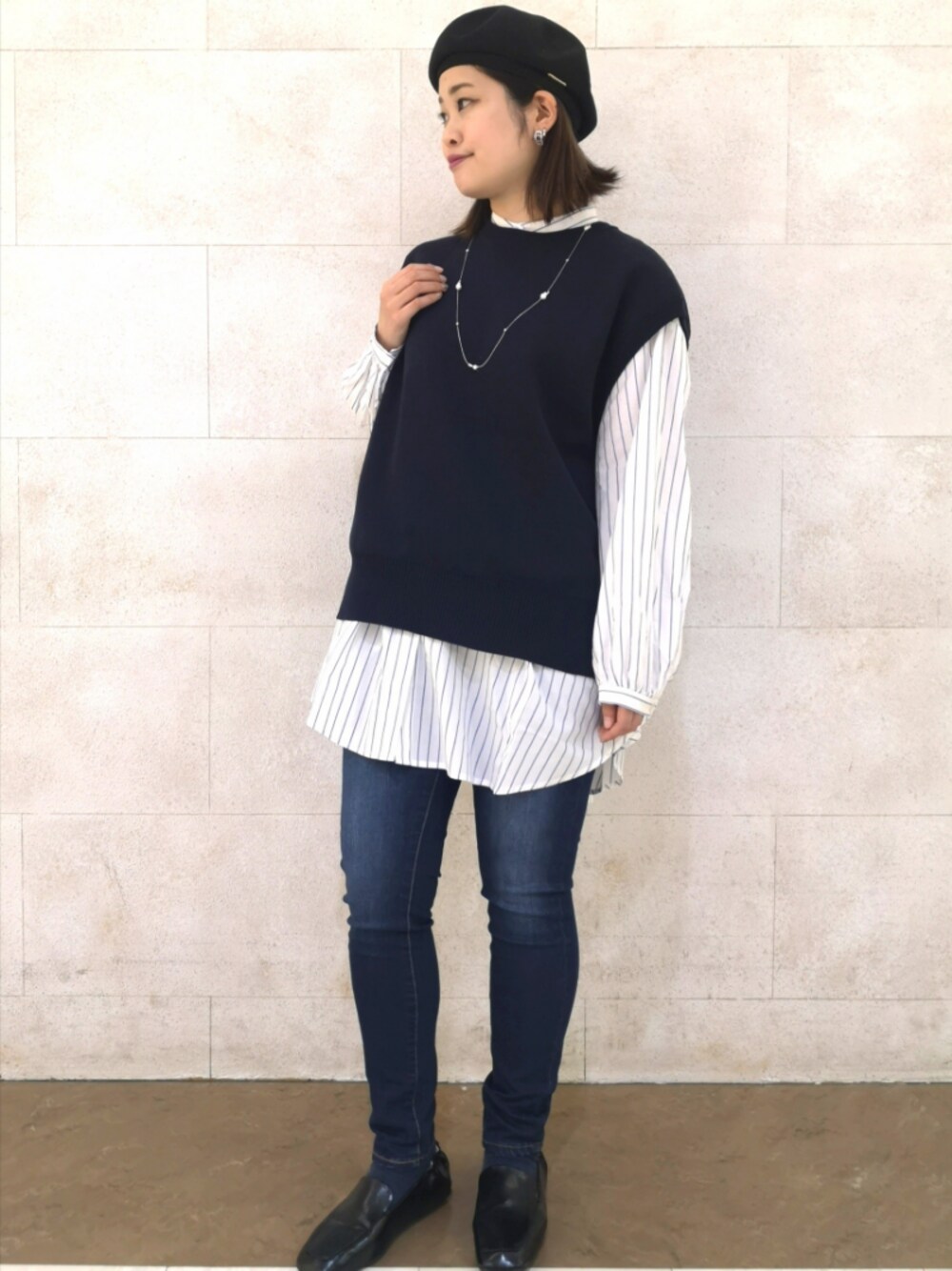 爽やかストライプシャツとニットベスト🦓 ふんわりギャザー袖の 柔らかい雰囲気漂うシャツチュニックと、 落ち感すっきりのニットベスト! こちらがなんとセットで登場です。.*🌙 スキニーパンツでカジュアルに◎ 小物はブラックとシルバーで大人っぽく仕上げました♪ Instagram>>>> @dedede18_
