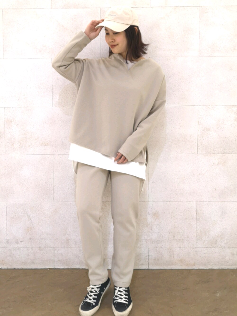 ポンチ素材で合わせたベージュコーデ🐩 上下共にポンチ素材、同色で合わせた セットアップ風コーディネート♪ 前後さのある白チュニックをレイヤードして、 大人の余裕のあるこなれ感をプラス◎ もちもちとしたシワになりにくいポンチ素材は 今注目したいアイテムです👀♡ Instagram>>>> @dedede18_
