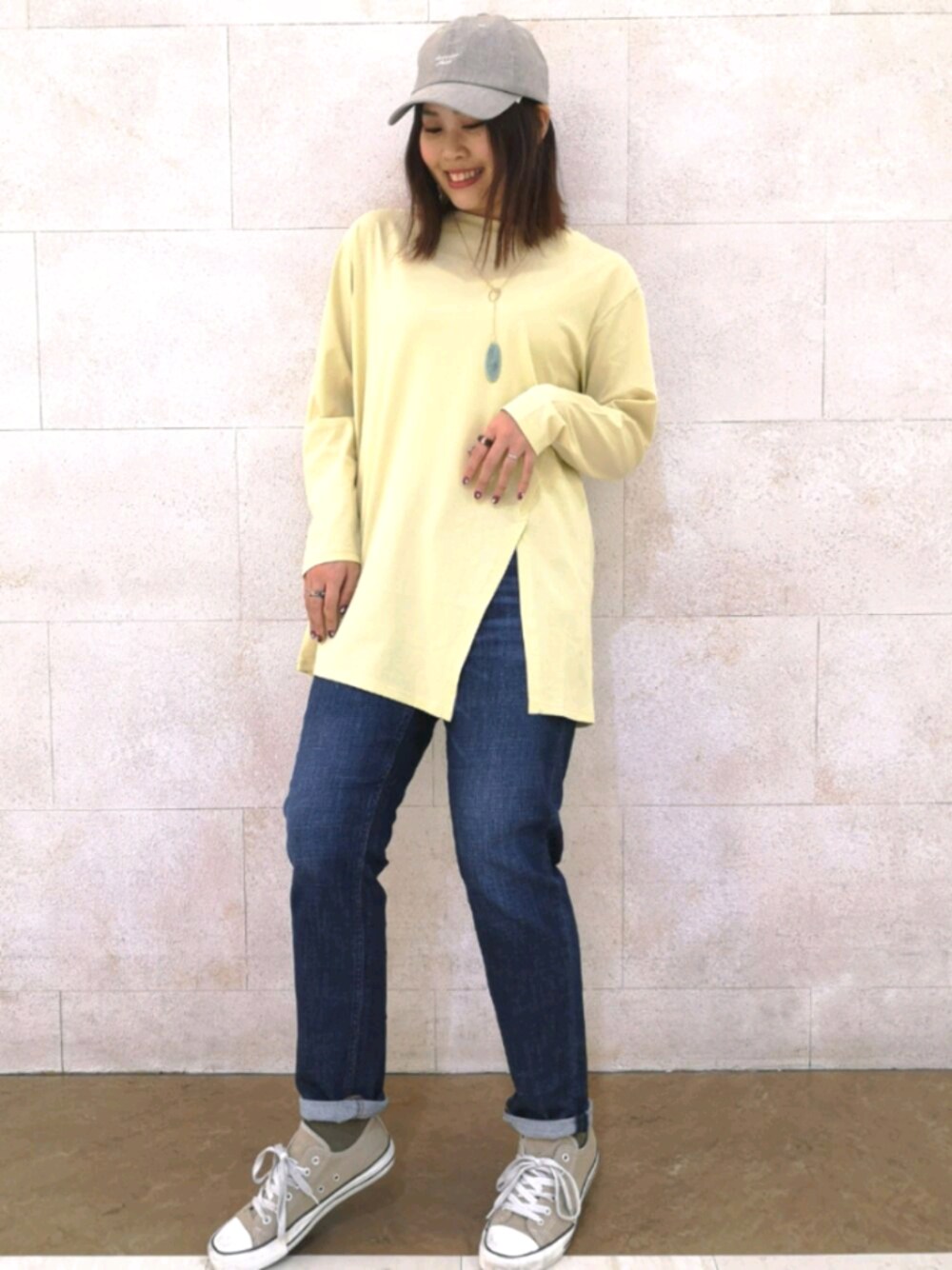 爽やかYELLOWのシンプルコーデ🐤 デニムパンツとスニーカー! 帽子を合わせてアクティブスポーティに⚾♪ Instagramも是非ご覧下さいませ🐊🐊🐊