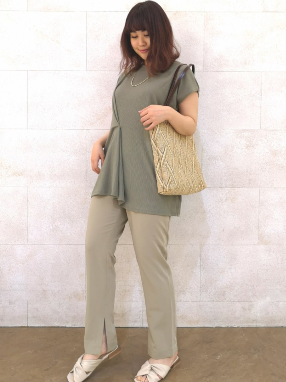 さり気なくすっきり魅せコーデ🌿🌿 フレンチスリーブなので二の腕細見え! 合わせたパンツは接触冷感なので、ひんやり🐧♪ 内側スリットがさり気なくこなれ感を演出◎ Instagram>>>> @dedede18_