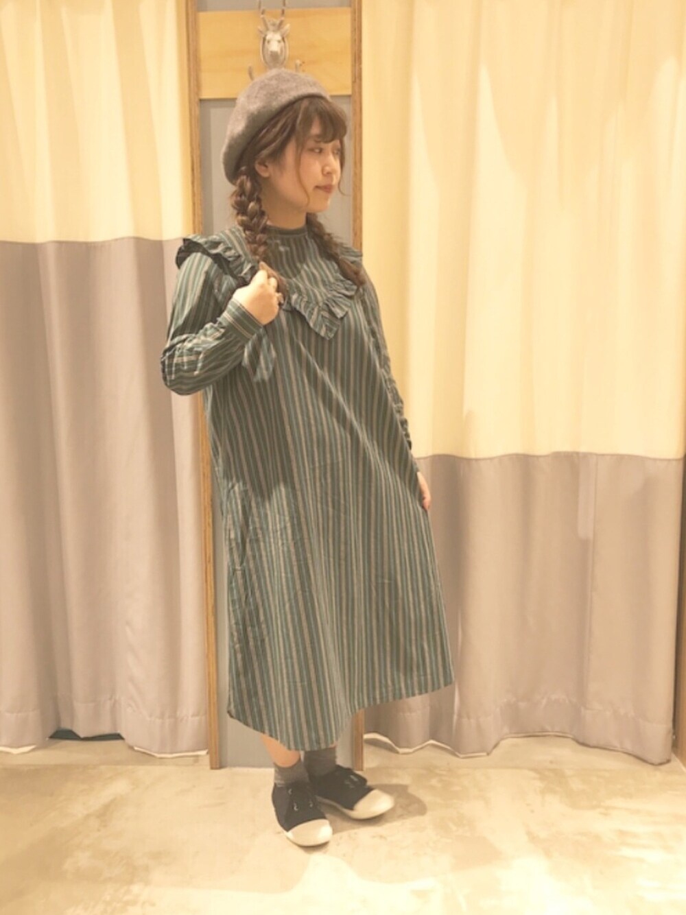 みなさんこんにちは♩ 前回の投稿のアウター無しverです🐻 フリルが可愛いです◎ わたしは1枚でさらっと着ましたが、 すっきり着るのがお好きな方は ベルトでウエストマークがおススメです💞 またもっとカジュアルに着たい方は デニムパンツに重ねて着ると可愛いですよ🙆♀️ ワンピースは着こなしがワンパターンになると 思われがちですが小物使いや+1点で 印象変えられるので色んな着方をしてみてくださいね☺️