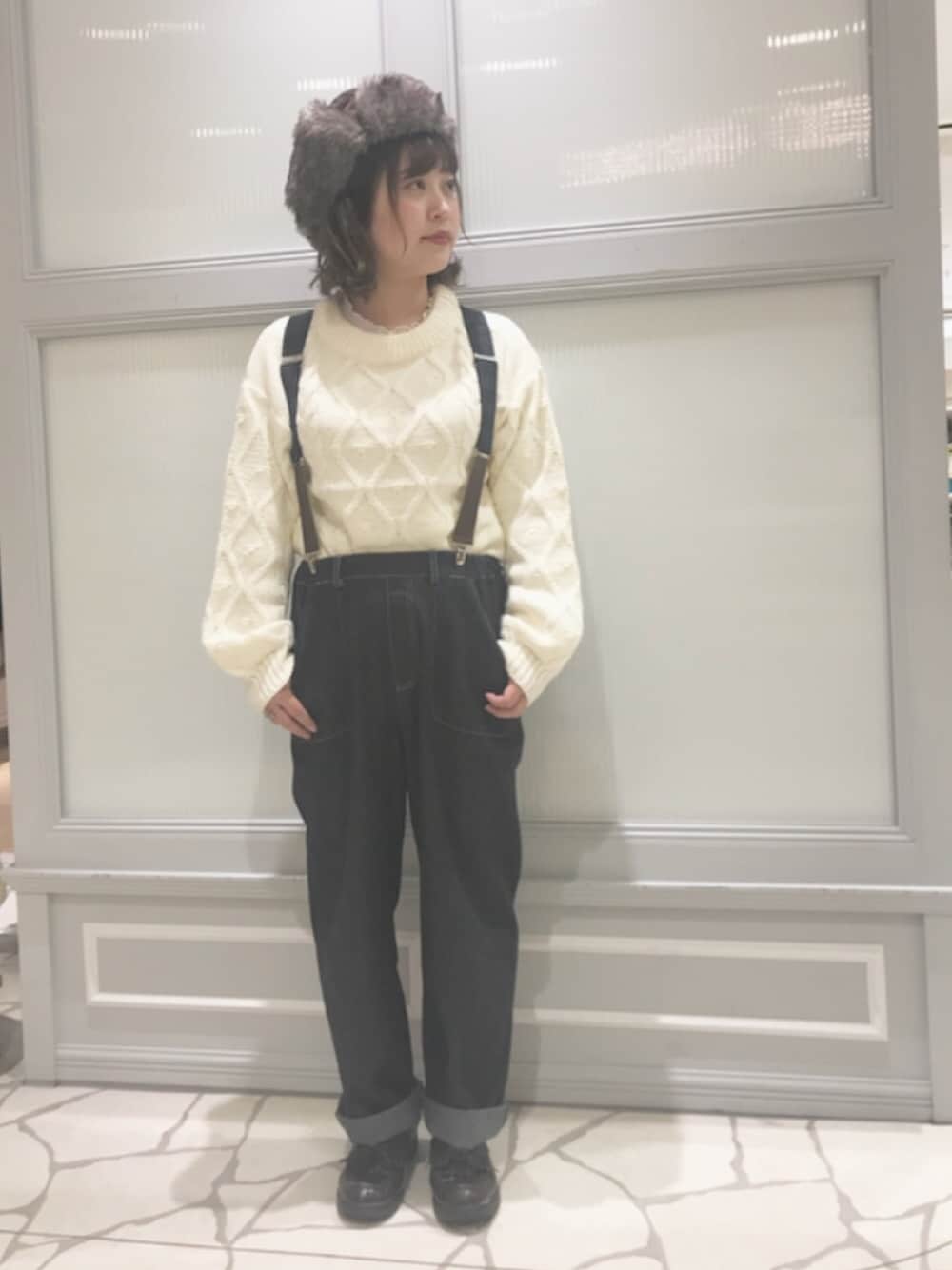 皆さんこんにちは♩ 出勤コーデです🌼 安定の白ニット×デニムコーデですが シンプルになりすぎないように サスペンダーとフライトキャップをプラスしました💭 このパンツは配色ステッチが可愛いです❤️❤️