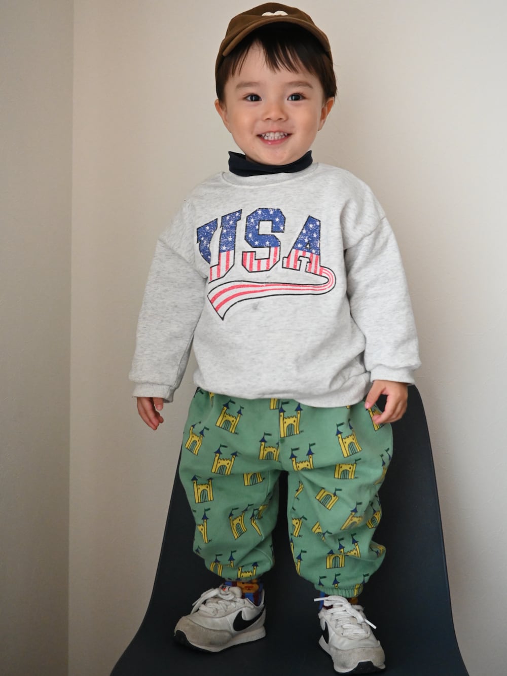 古着っぽいトップスでラフにまとめたキッズストリートコーデ