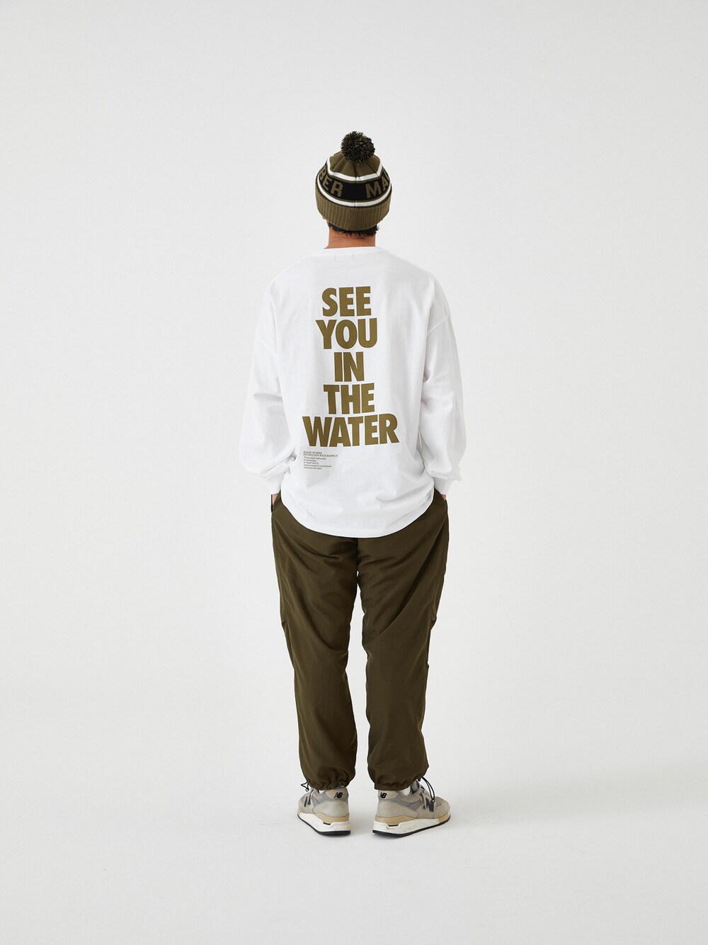 21SSコレクションでの過去最高のオーダーが付き、強烈なデビューを果たしたSEE YOU IN THE WATERが、21FWコレクションでもエントリー。大胆にバックに配置された良質なデザインはそのままに、ボディをホワイトに統一、プリントカラーでバリエーションを展開している。 高級で爽やかなイメージのMINT、US ARMYを彷彿とさせるOLIVE、ユニバーシティーカラーがトラッドなBURGUNDY、定番で何枚も押さえたくなるBLACKの4色展開。 フロントは20SSから久々に登場した繊細で控えめな印象のMagic NumberロゴがSEE YOU IN THE WATERを引き立てる。 ディテールはルーズフィットシルエット。 普段よりは1サイズ上げて着ても変化が楽しめる一枚。