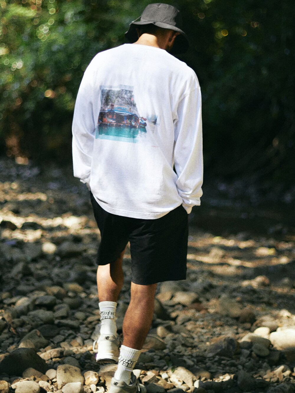 MAGIC NUMBER と親交が深い志津野 雷氏によるフォトをバックにインクジェットプリントを施した L/S TEE シャツ。 写真はベトナムのハロン湾で水上生活をしている集落の人たちを撮った1枚。 陸に上がる必要がない程充実した生活を送っており、彼らなりに不便も感じずに納得した生活を送っている。 水上での生活スタイルは、都会で暮らす我々への問いかけにも感じられ、同時に世界には様々な LIVIN' WELL が存在する事を教えてくれ、力強ささえ感じる一枚。 素材はアメリカ製空紡糸にる豊かな表情が魅力的な MAGIC NUMBER を代表する定番の US COTTON L/S T-SHIRT。 シルエットは肩幅、身幅共にゆったり目でたっぷりと着用出来る寸法に設定。 縮率を調整して洗いをかけている為、家庭での洗濯後の縮みもそれ程心配がない。