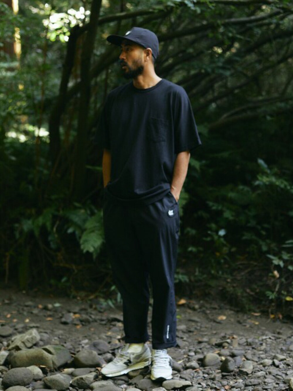 LIVIN' WELL を体現する上で欠かせない最高の着心地を求めた結果、4WAY ストレッチ素材に辿り着き、尚且つ撥水加工を施す事でより快適性を持たせている。 イージーパンツのアプローチであるが、 ワタリから裾にかけてストンと綺麗に落ちるシルエットはトラウザーズ式パターンによるもの。負荷がかかる部分には別生地を配置し、 程よいアクセントとしてデザインされている。裾を折った時のポイントにロゴ刺繍。スニーカーからサンダルまで幅広いコーディネートに対応。 ゆったり目のヒップとワタリで快適な穿き心地とシルエットに拘った 1 着。