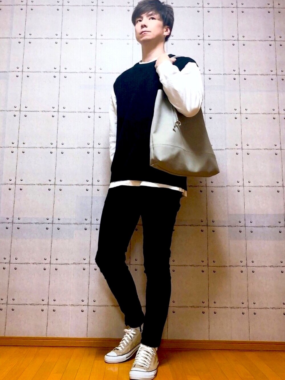 ご覧頂きありがとうございます😊 ユニクロのオーバーサイズクルーネックベストの黒を使ったブラックコーデです🎶 アクセントにグローバルワークのトートバックを持ってみました😁 よかったらいいね👍お気に入り➕フォローよろしくお願いします🙇♂️