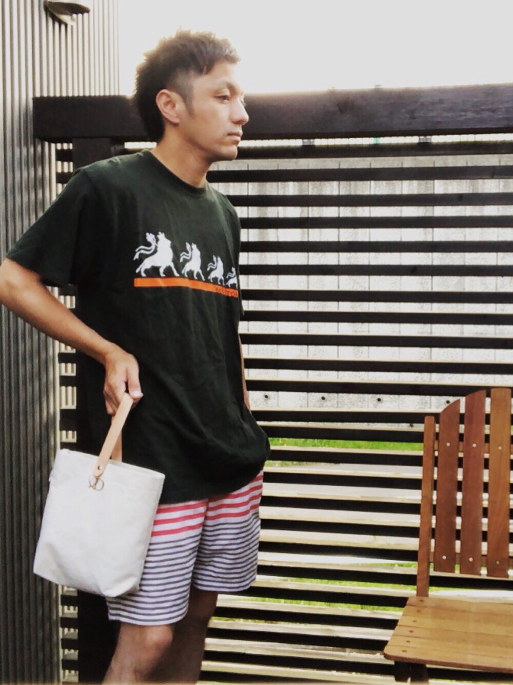 連日暑いです。僕、結構物持ち良いんで10年くらい前に友人のショップで買ったTシャツ着てみました。全然傷んで無くて、良いデザイン😉 Def.のワンハンドルトートと相性も良し👌