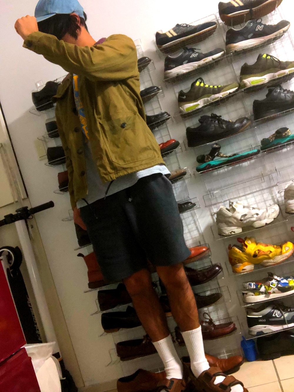 秋ですねー レザーのスポサンてカッコいいよね? with白ソックス カーキのジャケットは秋の王様