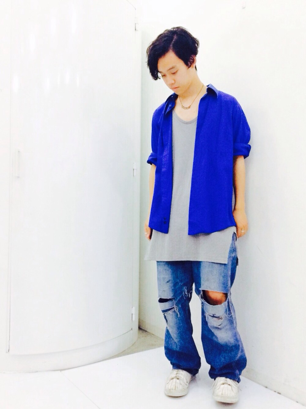 私服 shirts:used tanktop:UNUSED pants:vintage 肘上までロールアップしてAライン強調的な。