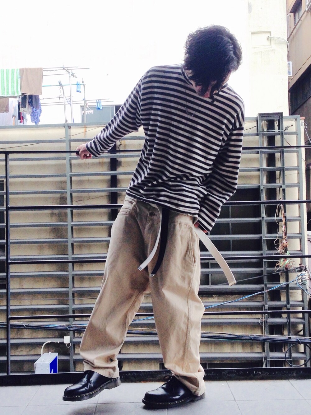 ronronnement style tops:USED pants:GANRYU shoes:Dr.martens ベルトループ5連のGANRYU。 ベルト4本付け。