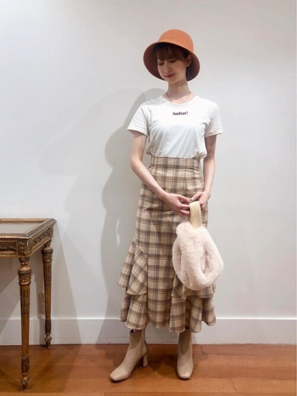 DEICYのスカート「チェックヘムフレアスカート」を使ったコーディネート