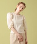 〇コンビパフスリーブブラウス 【スタッフ着用コメント】 身長: 158cm 普段サイズ: Sサイズ 着用サイズ: Fサイズ 骨格style: ウェーブ サイズ感: ウエストインしやすい丈感が丁度よかったです。 素材感: パフスリーブ部分は程よく透け感のあるオーガンジー素材です。見頃部分は少しカジュアルさも感じられるようなストライプ模様。甘すぎない雰囲気で着られます。 着心地: 伸縮性はあまりないですが、横ファスナー仕様に加え、後ろ側はリボンを解い着ることが出来るので、着脱しやすかったです。