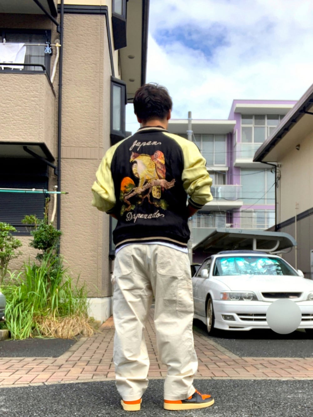 みんなでアウトレット行った時のやつ。 前の日にスニーカーの整理してて、そこでどうしても履きたくなったシャタバを今更ながらおろしました。 テカテカな感じが履きこなしにくくて今まで寝てましたが、久々に見るとメチャメチャカッコ良い。 この日は涼しかったので今シーズン初めてスカジャンを着ました。 スカジャンは昔からメチャメチャ好きで、これ着るとテンション上がります。 一応スニーカーとスカジャンの柄の色を合わせました。 スニーカーとスカジャンがド派手なのでパンツはシンプルな白にしつつ、スニーカーのボリュームに負けないように太いやつ。 Tシャツは無地の白Tにしました。 スカジャン好きがもっと増えたら嬉しいなー。 いいね、お気に入り、コメントいただけると嬉しいです!