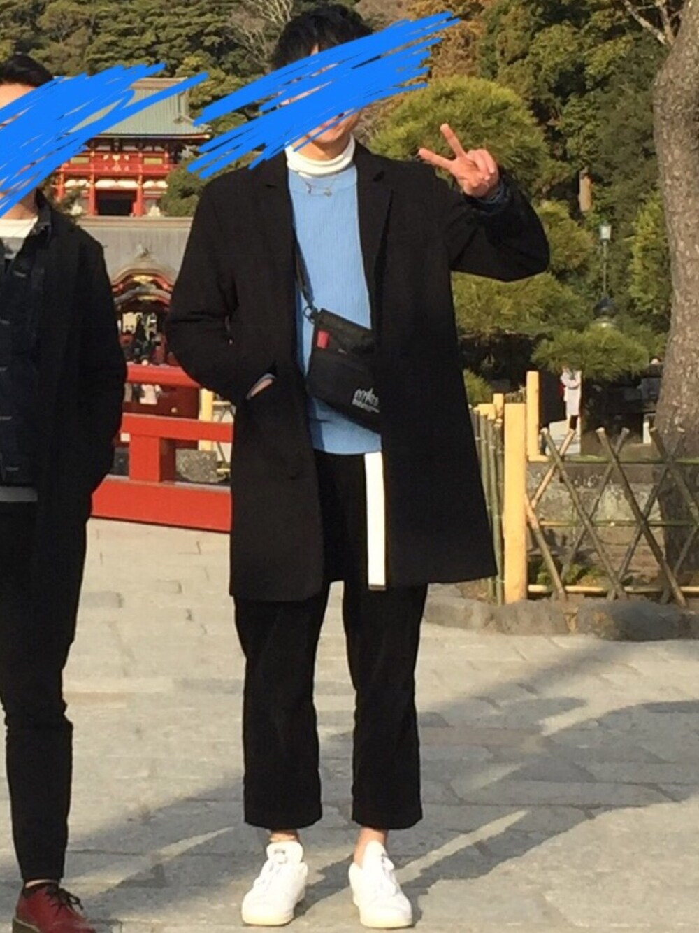 ワイドパンツを使用したコーデ🐶 ちょっと可愛く水色のニット使いました