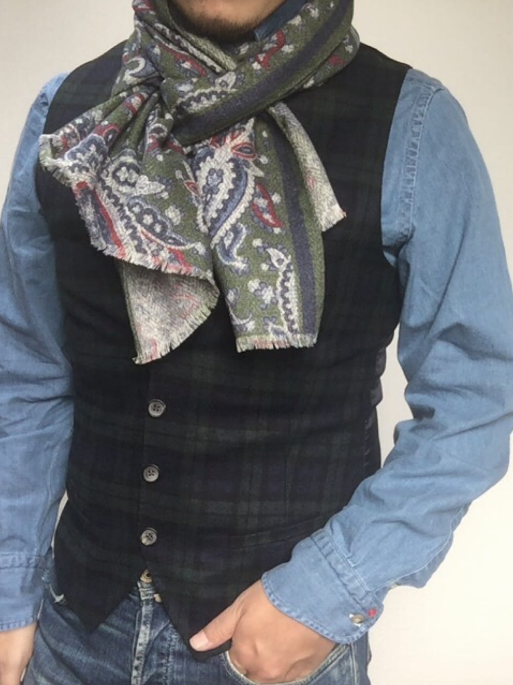 BOLZONELLACantarelliRosi collectionこの画像から似たアイテムを検索できます7779お気に入り (2)90del fioreさんへのコメントNO COMMENTコメントはスマートフォン用アプリからご利用できます着用アイテムBOLZONELLABOLZONELLAシャツ/ブラウス (ブルー系)シャツ/ブラウス探すZOZOTOWNで探すCantarelliCantarelliベスト (グリーン系)ベスト探すZOZOTOWNで探すRosi collectionRosi collectionマフラー (グリーン系)マフラー探すZOZOTOWNで探すdel fioreのシャツ/ブラウスを使ったコーディネートコメントを表示2017.10.11着用ブランドBOLZONELLACantarelliタグ#ストールコーデ#スカーフアレンジ#ジレスタイル#ジレ#デニムシャツ#ブラックウォッチ#ペイズリー柄ストール#ペイズリーモデル情報男性・171cmミディアムヘアー似ているアイテムBOLZONELLA × シャツ/ブラウスCantarelli × ベスト関連フォルダHow to Tie a Scarfdel fiore@del_fiore / 171cm / MEN / ミディアムヘアー0コーディネート0フォロワー注目のコーディネートアプリでもっと見るもっと見る