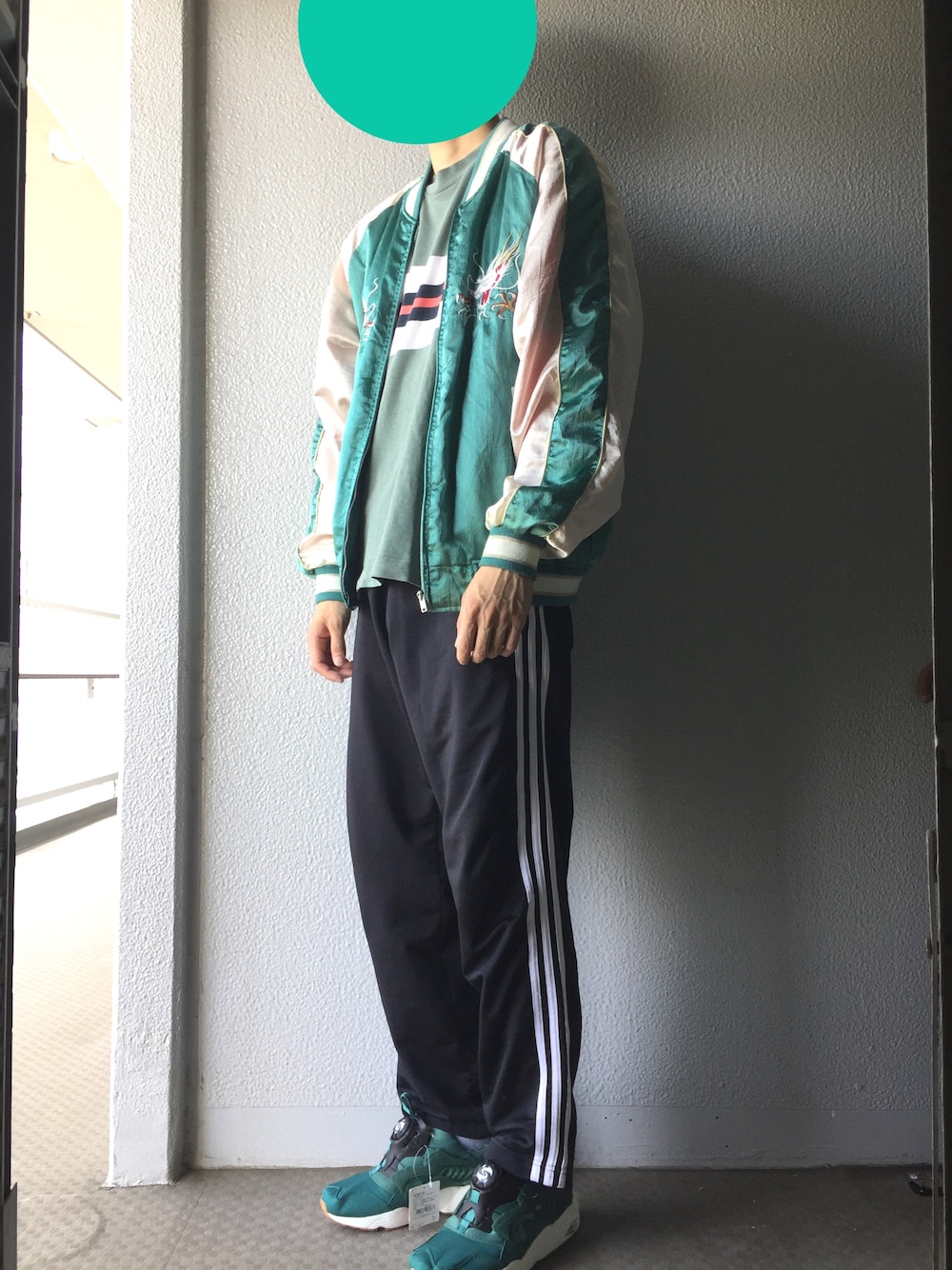 グリーンをベースにまとめ、スポーツミックスを意識しました。ディスクブレイズ以外は全て古着です。 スカジャンとディスクブレイズはメルカリで販売してます。skuc で検索してみて下さい🙇 スカジャン 3980円 ディスクブレイズ 9999円 ディスクブレイズに関しては新品!なので写真にタグがついてます、、😅