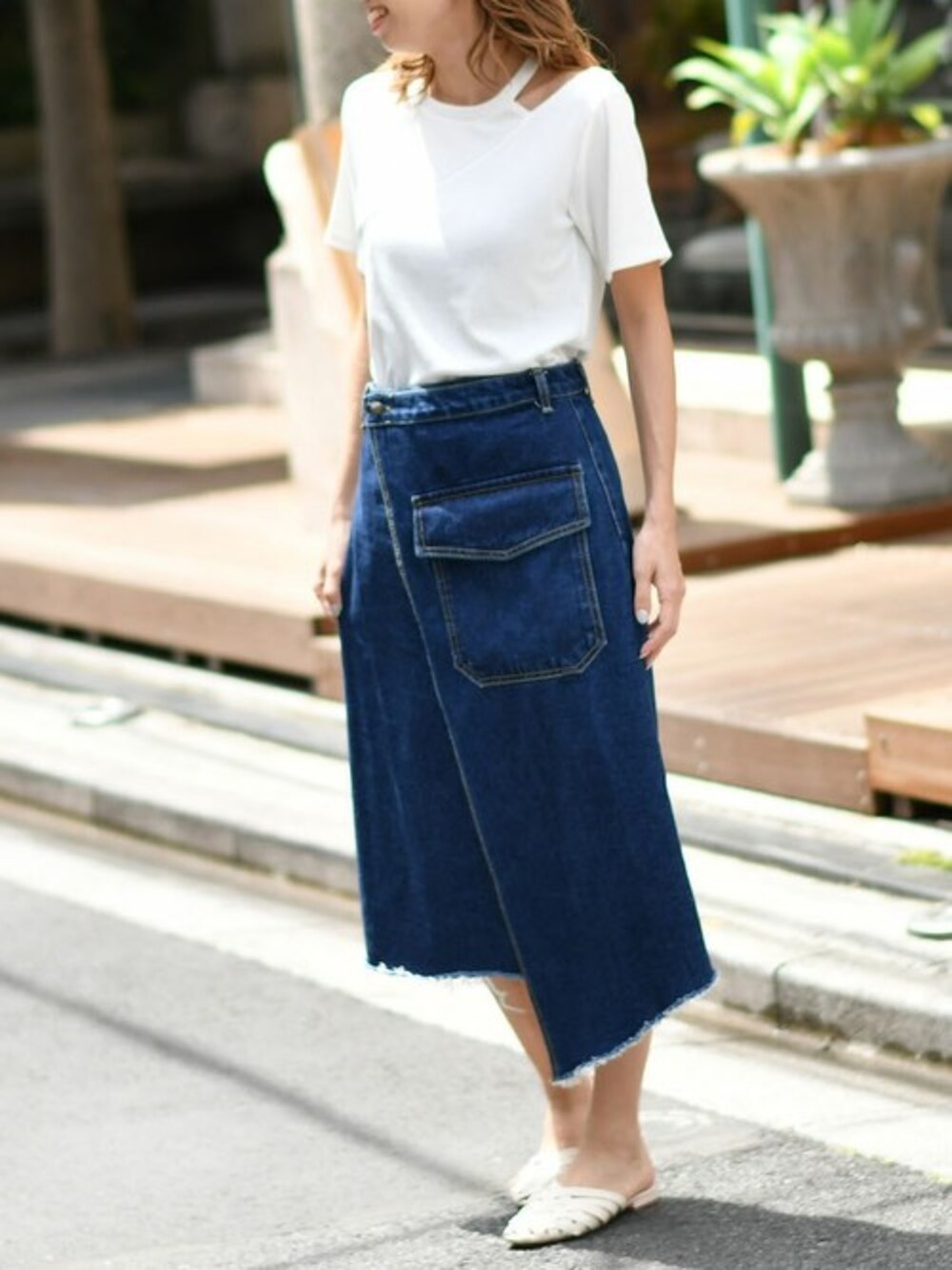Delyle NOIR STAFFのTシャツ/カットソー「アシメデザインショルダーT / ワンショルダーカットトップス」を使ったコーディネート