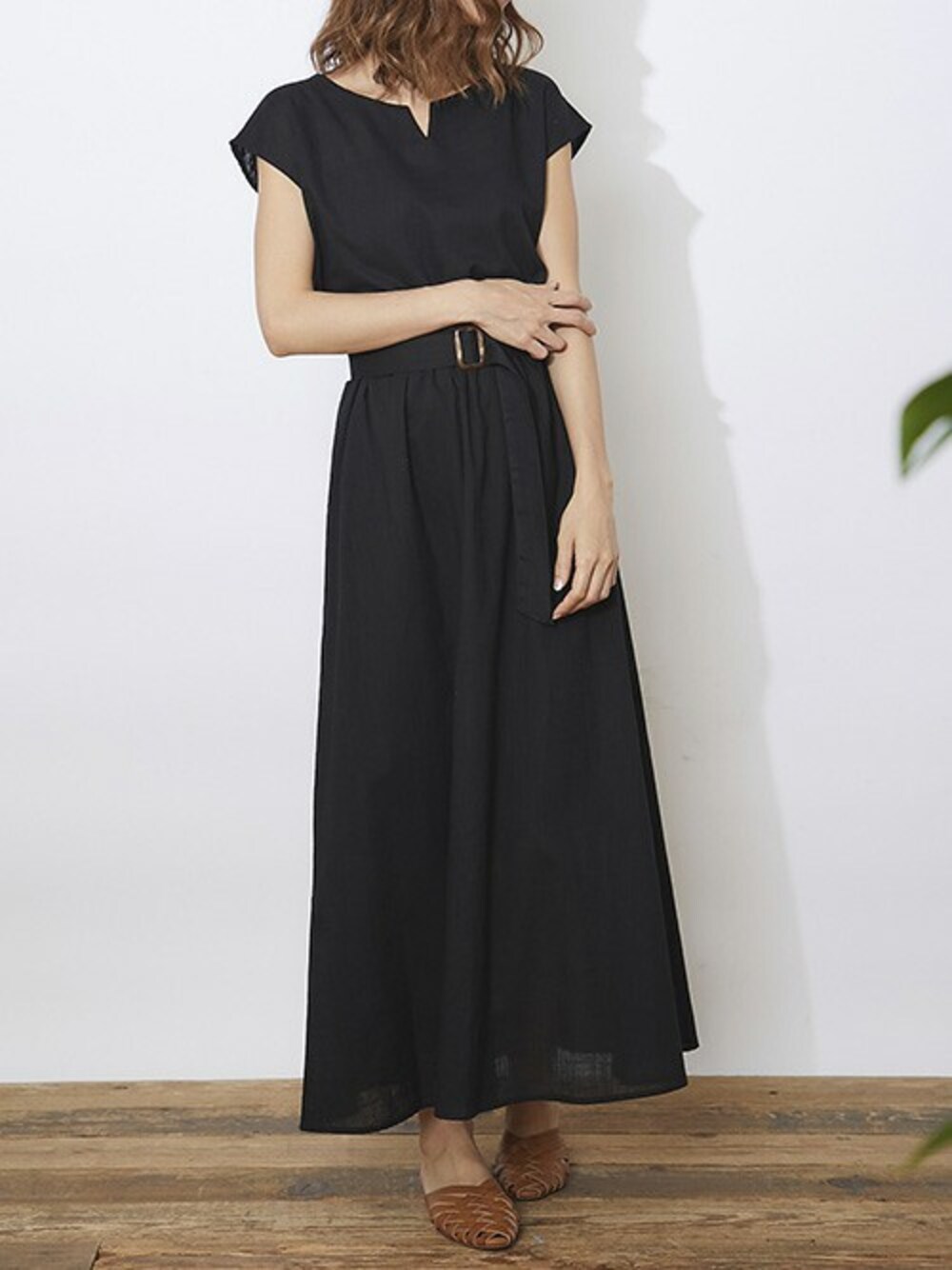 Delyle NOIR STAFFのワンピース「【DELYLE】リネンライクセットアップ/キーネックフレンチスリーブトップス×フレアスカートSET」を使ったコーディネート