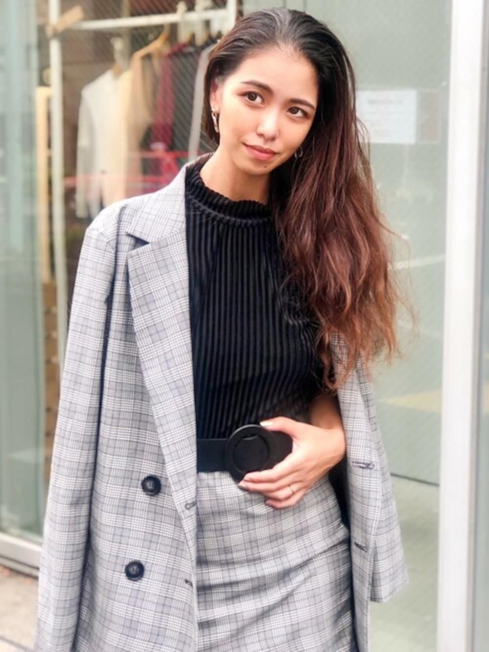 秋にオススメのダブルボタンのジャケット♡ チェック2色と、定番ブラックをご用意しました! 羽織るだけでトラッドな雰囲気漂うジャケットです。 ドロップショルダーにし、カジュアルな雰囲気でも着られるシルエットになっています♪