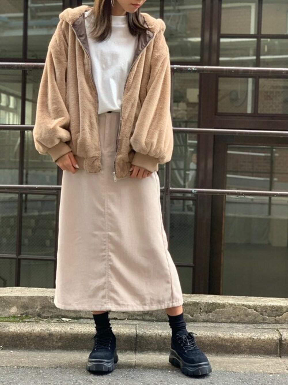 可愛さもかっこよさも兼ね備えた2WAY仕様のMA-1 もこもこファーの可愛い着こなしと、MA-1風のメンズライクな着こなしができるリバーシブル仕様。 1枚で全く違う印象になるので、気分に合わせて飽きずに着回せ、コーデの幅をグンと広げます! ボリュームのある今どきシルエットなので、ニットなどの厚手のインナーも楽に着用できます。 フードにボリュームを持たせ、首回りもあったか快適です♪