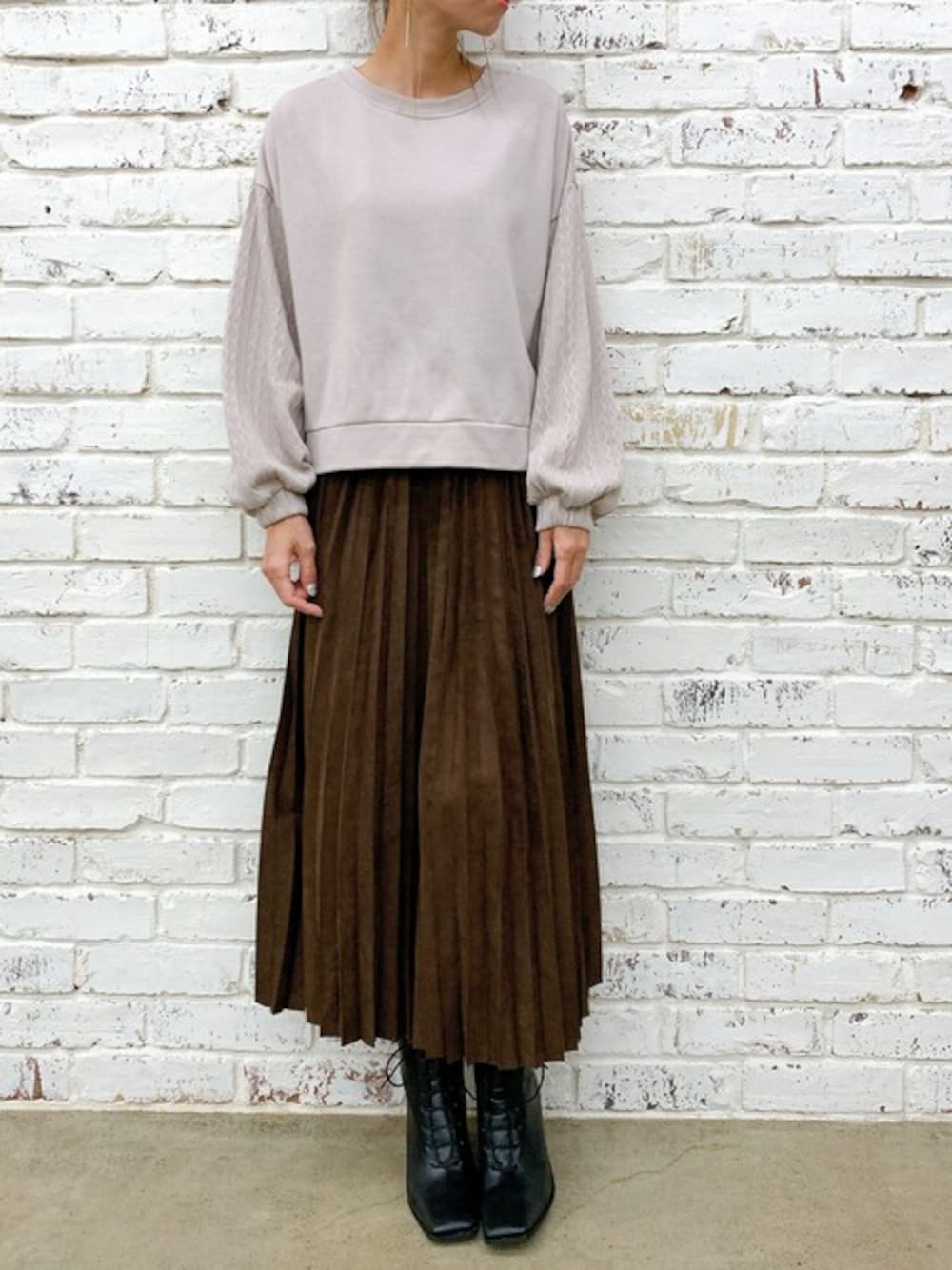 Delyle NOIR STAFFのスカート「【DELYLE】エコスウェードプリーツスカート」を使ったコーディネート