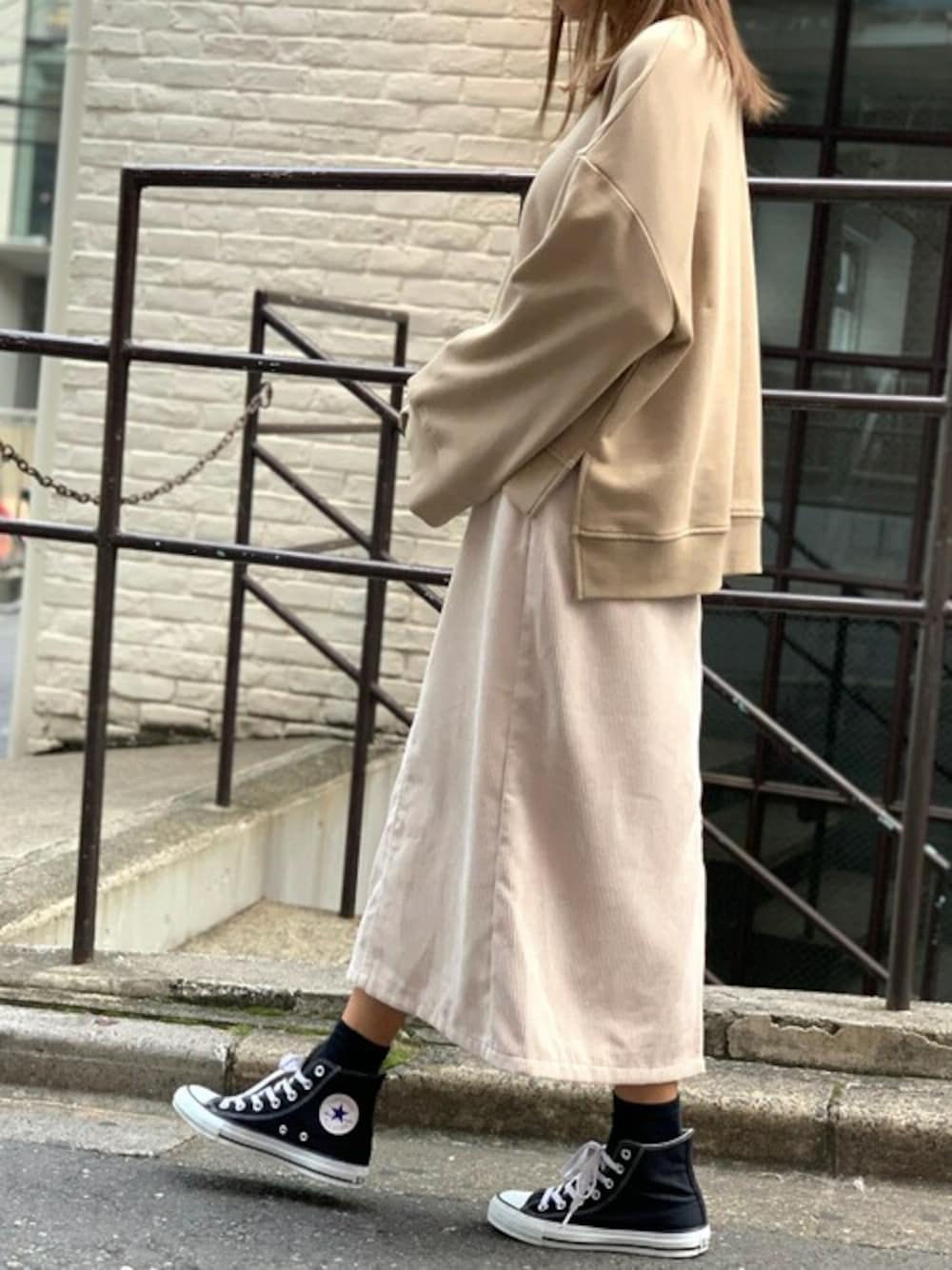 ゆったりルーズなシルエットにサイドスリットが抜け感がプラス♪ 柔らかな裏毛の暑すぎない素材感で長く着用出来ます。 ハリ感のある生地がふんわりシルエット◎ 袖はたっぷりのボリューム感で女性らしさUP♪ スカートからデニムパンツまでオールマイティー着用可能です。