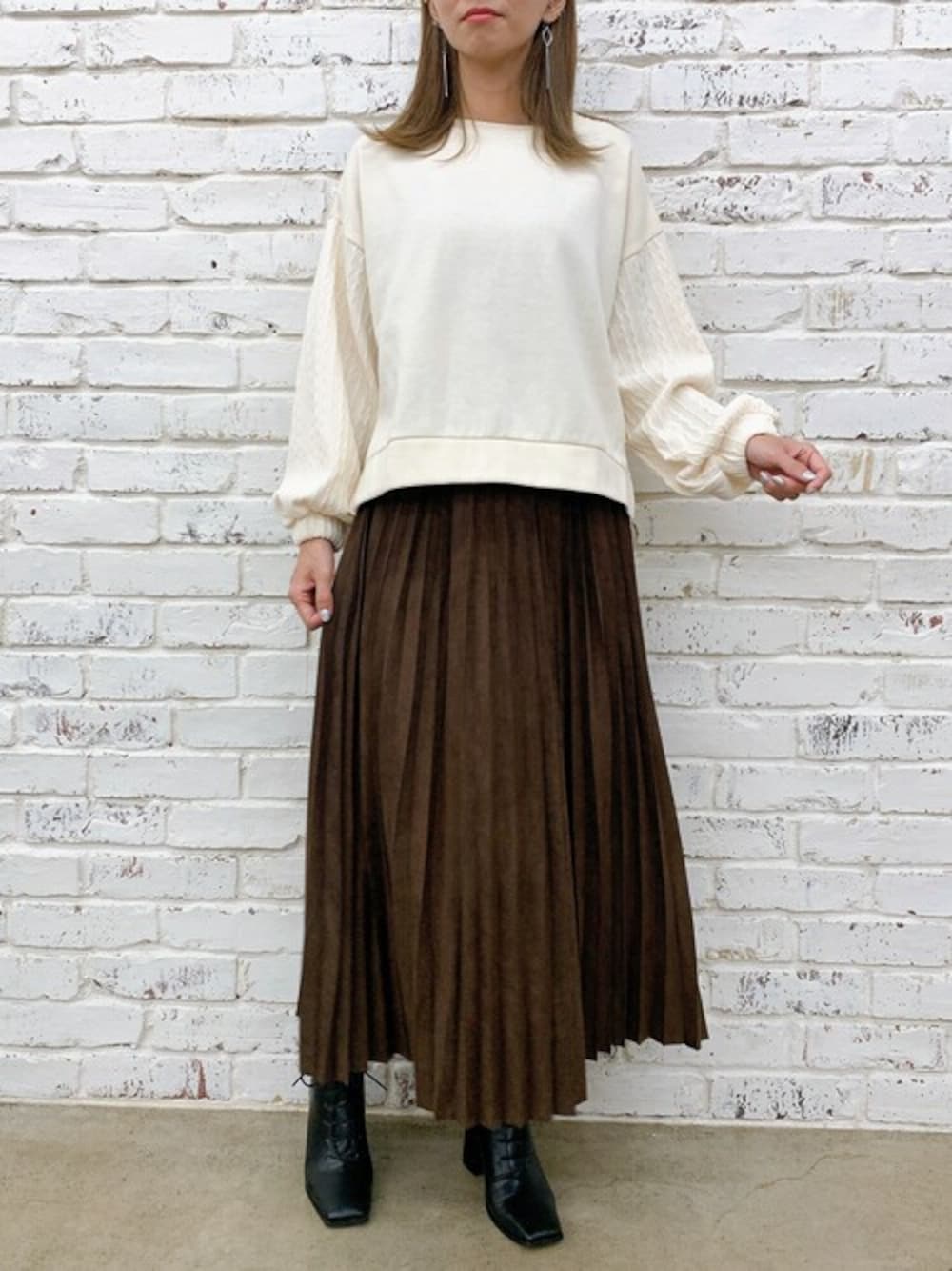 Delyle NOIR STAFFのスカート「【DELYLE】エコスウェードプリーツスカート」を使ったコーディネート
