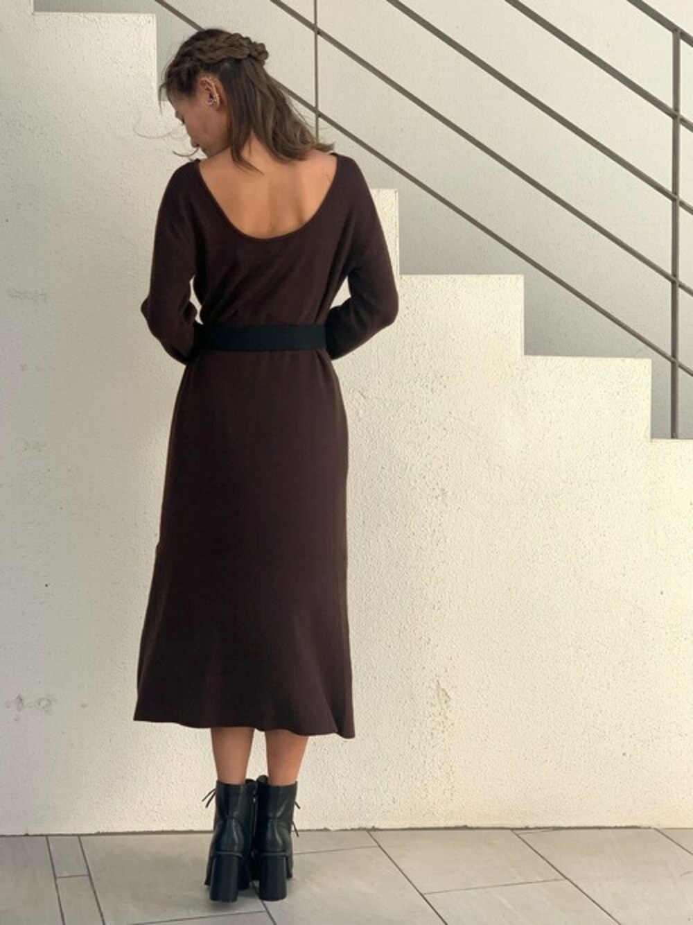 オン・オフ問わずに着用いただけるワンピース ストレートシルエットのリブワンピース。 バックオープンでさりげなく肌見せ。 しなやかなシルエットがボディラインを拾い、女性らしい印象に。 シンプルなデザインなので様々なスタイリングを楽しんでいただけます。